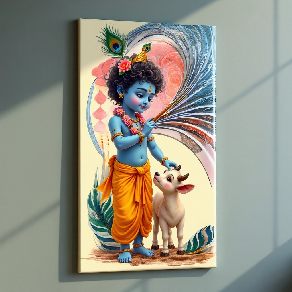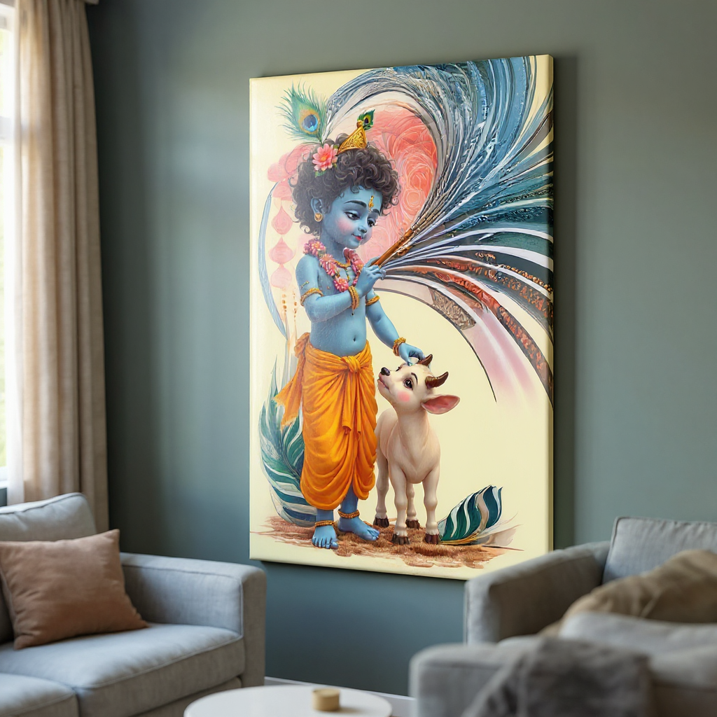 Divine Krishna Canvas Wall Art – Vibrant Abstract Painting for Home & Temple Décor