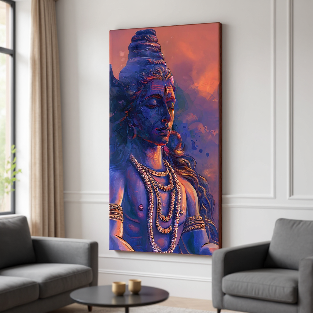 “Lord Shiva Canvas Wall Art – Abstract Spiritual Painting for Home & Temple Décor”